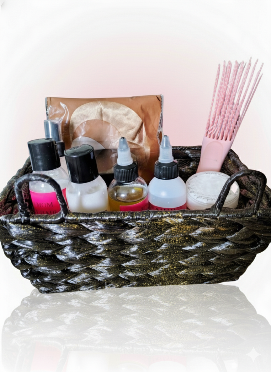 This set includes Peppermint Pre-Poo, Gentle Moisturizing Reconstruction Shampoo & Conditioner, Repair & Revitalize Deep Conditioner, Flaxseed Anti-Breakage Detangler, Rosemary & Lavender Hydration Spray, T-ACV Rinse, Moisturizer, Sealant, Detangling Brush, and a Bonnet/Durag