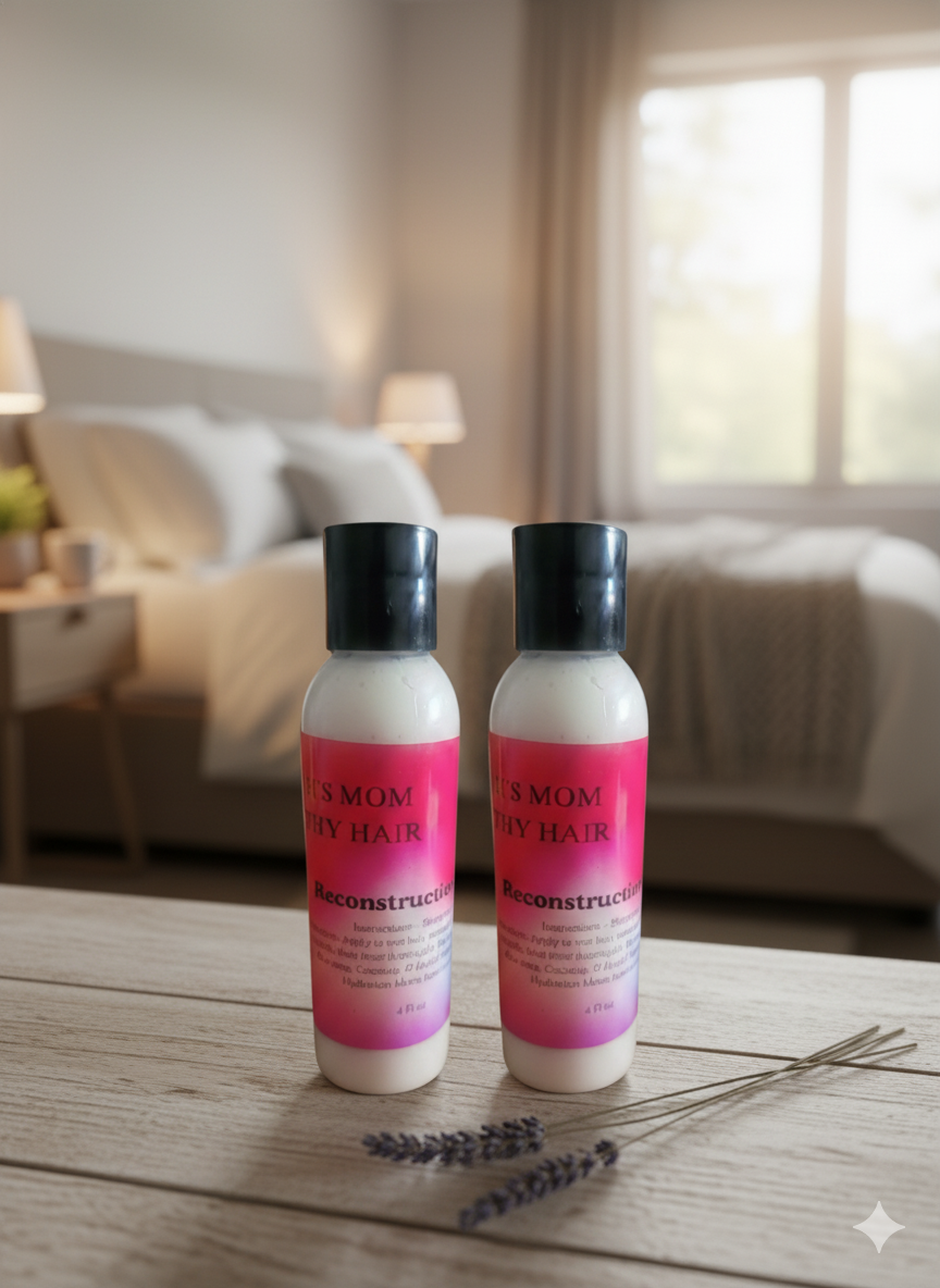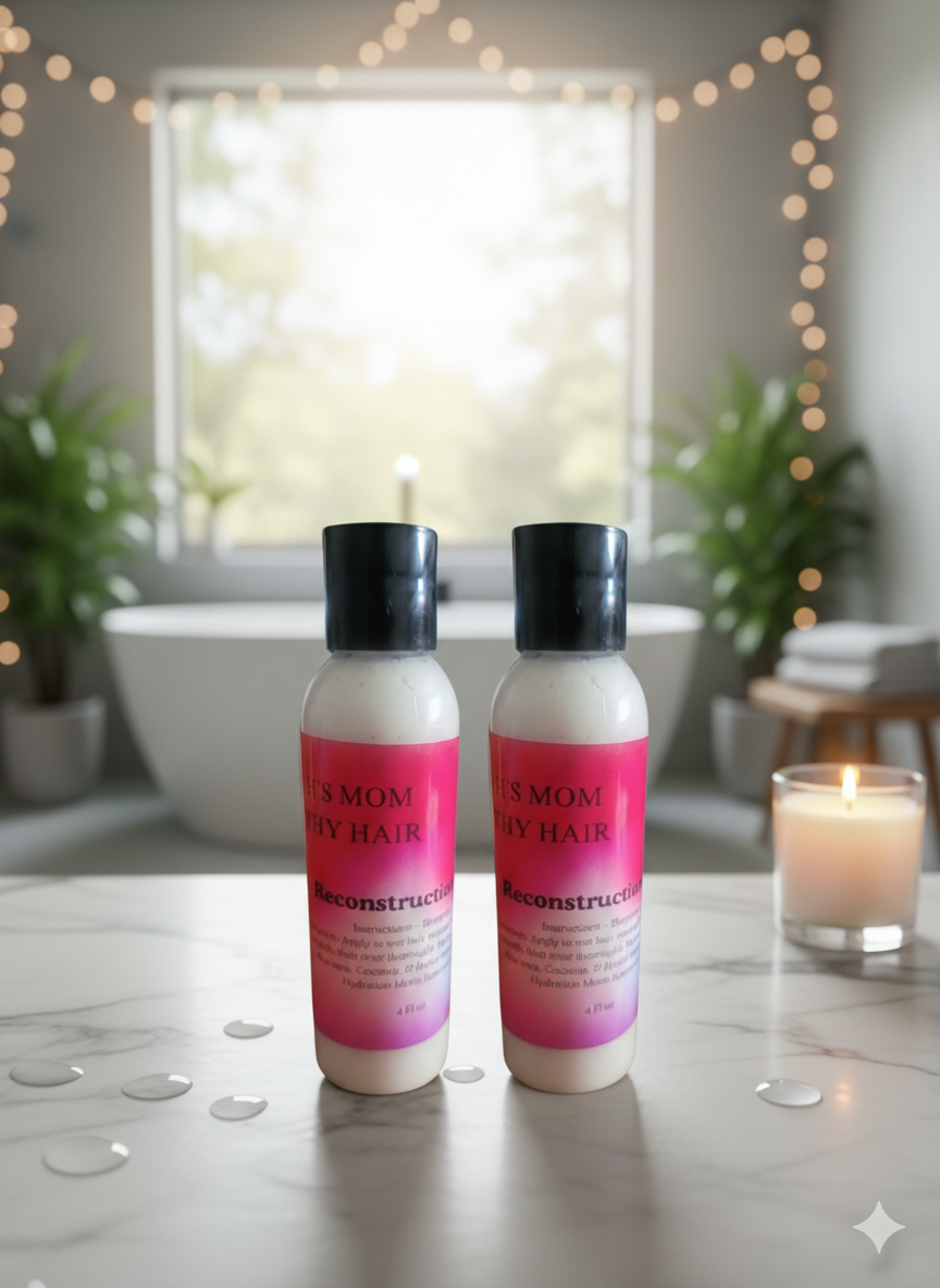 The Gentle Reconstruction Shampoo delivers a soothing yet effective cleanse using castile soap, essential oils, and botanical extracts to lift away buildup without stripping natural moisture. Fortifying proteins reinforce the hair’s structure, helping to improve elasticity, reduce shedding, and support healthier, more resilient strands—leaving hair clean, soft, and ready for deep repair.